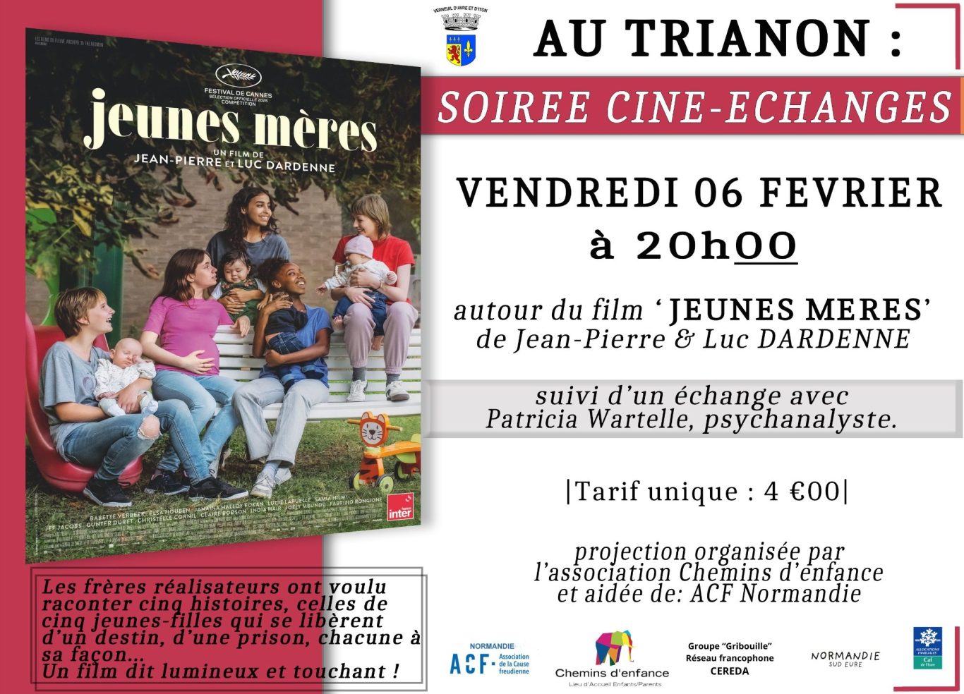 20H00 🏠 au Cinéma Le Trianon: Soirée Ciné Débat avec la projection du film Jeunes mères suivie d'un échange avec le public